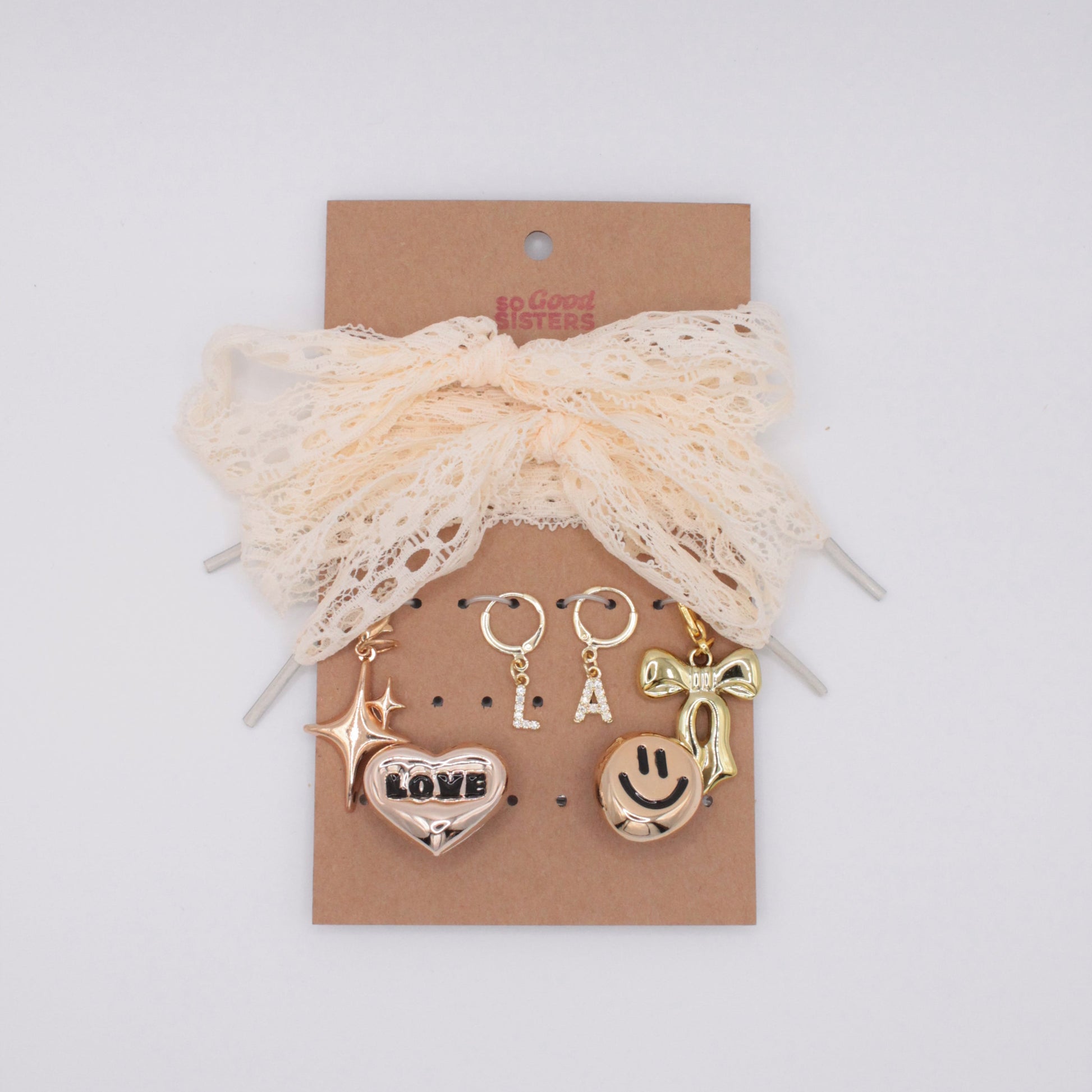 Laid-back yet luxe — the LA Dream Set features beige lace laces and gold LA charms. Add a touch of California sunshine and customize your sneakers with golden charms.