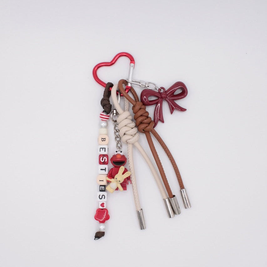 The iconic red of Elmo, reimagined in a bold heart carabiner and candy-toned beads.